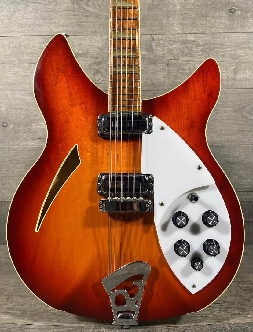 The list of anachronistic/inauthentic features is long, but most obvious are the bound soundhole, 24 fret neck with poured inset inlays, and “R’ tailpiece. Again, it was just a tarted up contemporary 360/12WB. As a 1970s-1980s era Rickenbacker? Cool! As a Beatles guitar? Bad! Luckily for purists the model was short-lived, with production only running between 1982 and 1984.