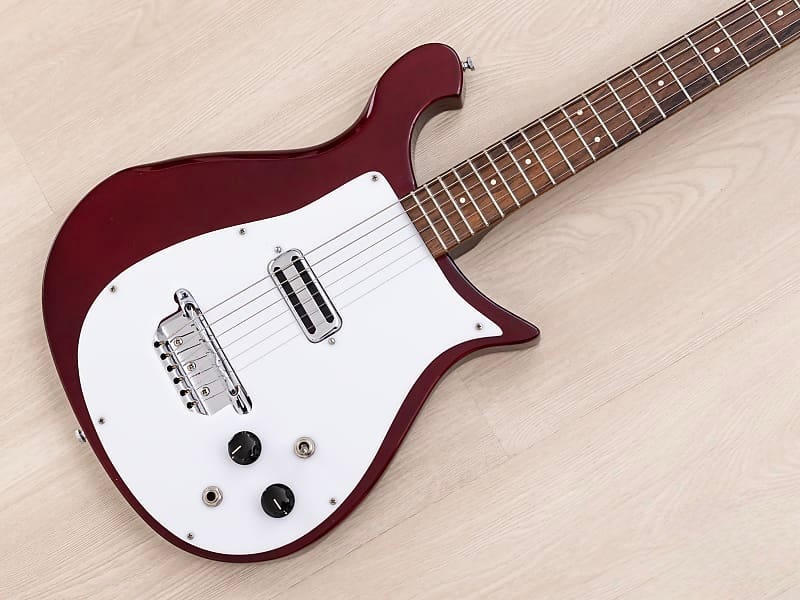 The guitar also featured three period “hot/12k” toaster pickups, Kluson Deluxe style closed back tuners, a period Rickenbacker bridge, Bigsby B-5 vibrato, “short” output plate, and four Rogan knobs on a two-level gold pickguard.