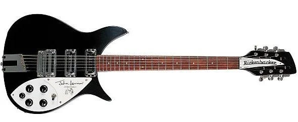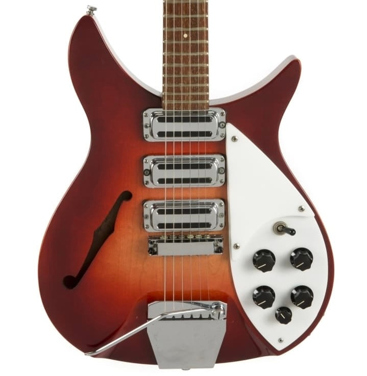 The next John Lennon guitar on the list is the 325/12. A one-off produced in 1964 for John, it answered the question “how do you keep a short scale 12 string guitar in tune and intonated?” And that answer was “you do not”. Used only sparingly, what set Lennon’s 325/12 apart from its 6-string brother was the headstock (obviously) which featured a “stubby” truss rod cover (also seen on the first Rose Morris 1993 12-string guitars), and a trapeze tailpiece and standard bridge in place of the Accent/roller bridge found on the 6 string version.