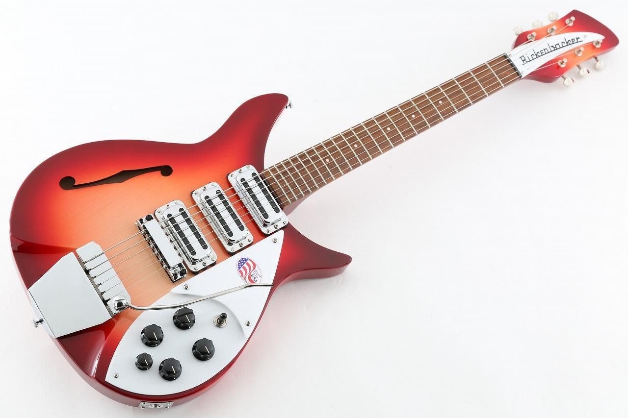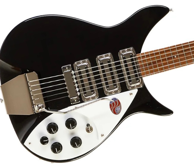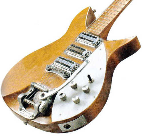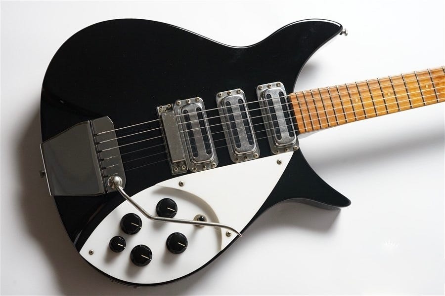 The two colors make it a bit of a weird mishmash of features—Lennon’s was painted black before it gained the Bigsby, and had lost the Rogan knobs by the time it was painted. Even more incongruously, as the model was being discontinued in 2000 it could be ordered in factory colors other than Jetglo and Mapleglo Fireglo/Teal/Midnight Blue etc examples exist. All that said, it was a huge improvement over the 320B. But there would be better still.