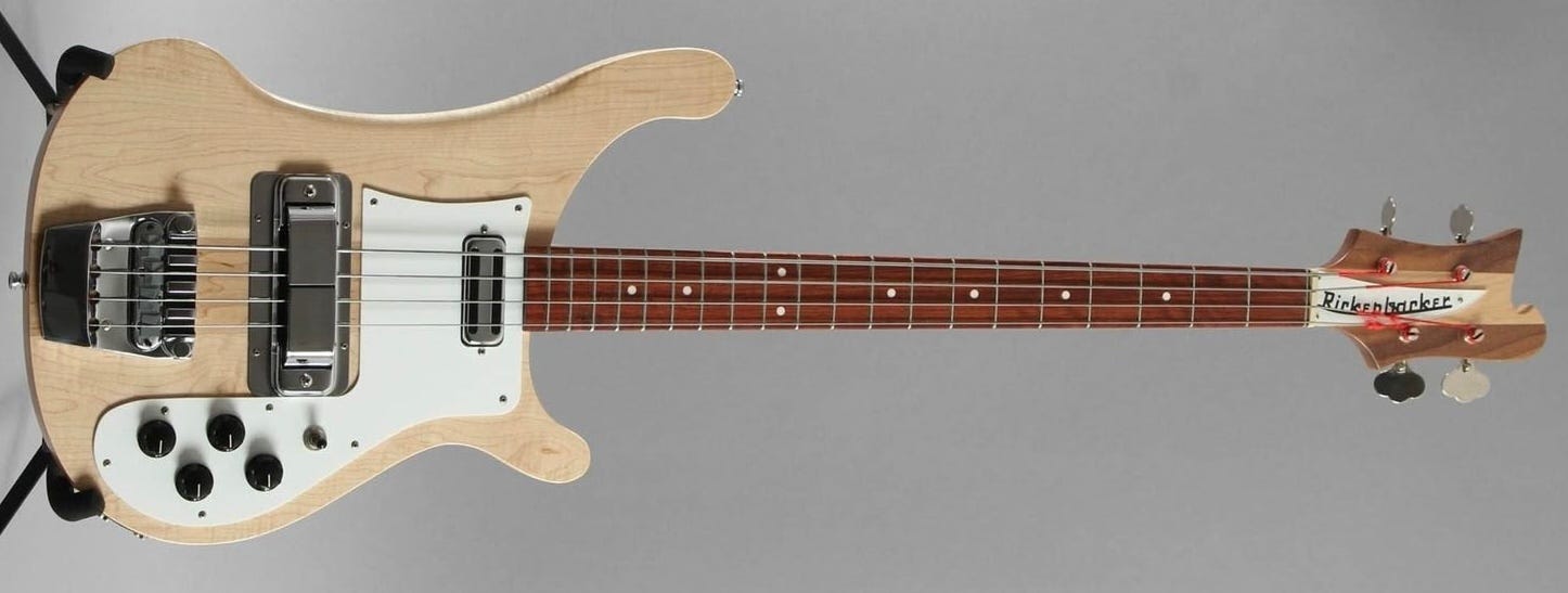 Now you’ll notice I said there were two of them: The 4001C64 and 4001C64S. What’s the difference? Well, the C64—offered in Fireglo and Mapleglo—was designed to replicate the bass as it was new. The C64S was the later “Wings” era guitar with the overly sanded, cresting wave-less horns, the white nut/zero fret, a different bridge pickup surround, and a bridge without the vintage “gap tooth”. It was offered stock in a Satin Mapleglo finish, but other colors would be made available on both guitars over their lives in small/custom runs. Production would run through 2010 on both versions. While “Lennon” and “Harrison” models live on to this day, there has been no “McCartney” Rickenbacker available since then.