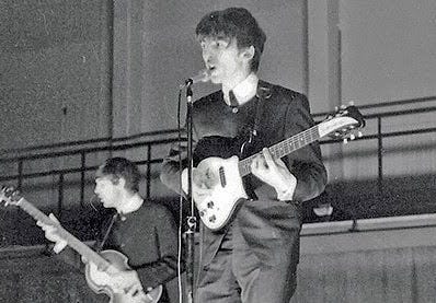 The last of the John Lennon 325-style guitars was a 1964 Rose Morris 1996 acquired in late December 1964. The ‘58 had been retired earlier in the year, and during a show at the Hammersmith Odeon in London he dropped the ‘64 325 off the stage and cracked the headstock. Rose Morris stepped in with a substitute Fireglo 1996 with a 2 o’clock f-hole, and John played it for a few shows until the 64 325 was repaired. Rose Morris took full advantage of the situation, advertising the 1996 as the “Beatle Backer” with John’s photo alongside a picture of the model. The guitar was given to Ringo who would later auction it off.