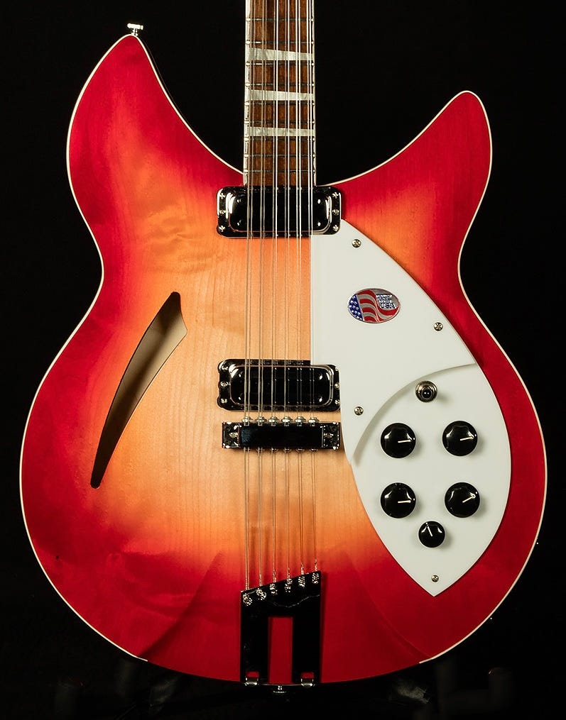 But just as with Lennon’s first 325, the company was dedicated to getting it RIGHT on the next try. And the 360/12C63, launched in 2005, addressed every single point listed above. The body shape is right. The headstock shape is right, as is the truss rod cover shape and lettering. The bracing and top thickness is right. The side dots are red. The bridge is the correct style. The wiring has the “vintage tone circuit” on the bridge pickup. Even the picky stuff like the screws is right. And of course, the hot toasters are replaced by modern scatterwounds. A handful have been made in Jetglo, but 95%+ are Fireglo just like George’s. And they’re still pumping them out today.