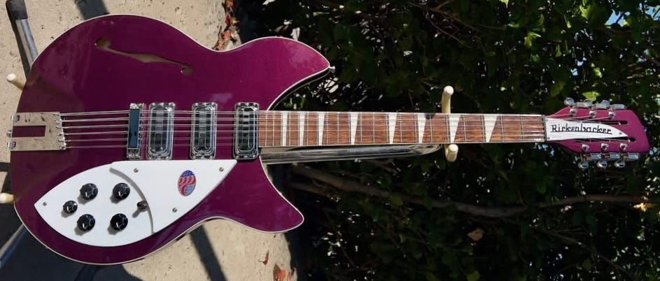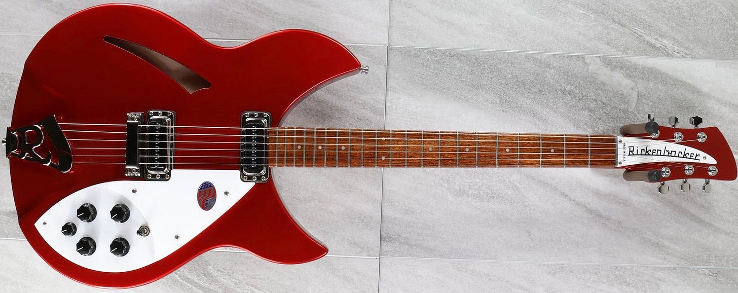 A run of 10 was produced for US retailer Sweetwater. Features a maple fretboard, mirror-backed pickguard and truss rod cover with an outlined Rickenbacker logo, “MADE IN USA”, and trademark “R” engraved on the back, and chrome knobs as used on the 650 series guitars.