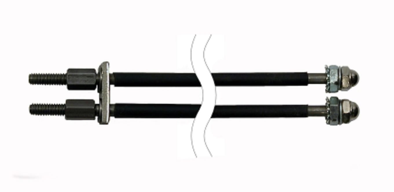 You already know what you’re looking at here—there’s just two of everything except the thrust plate. Two rods, two adjustment nuts, and two anchors composed of a toothed lock washer, a nut, and a domed acorn nut.
