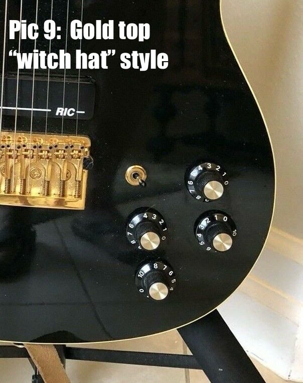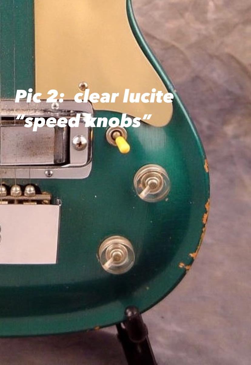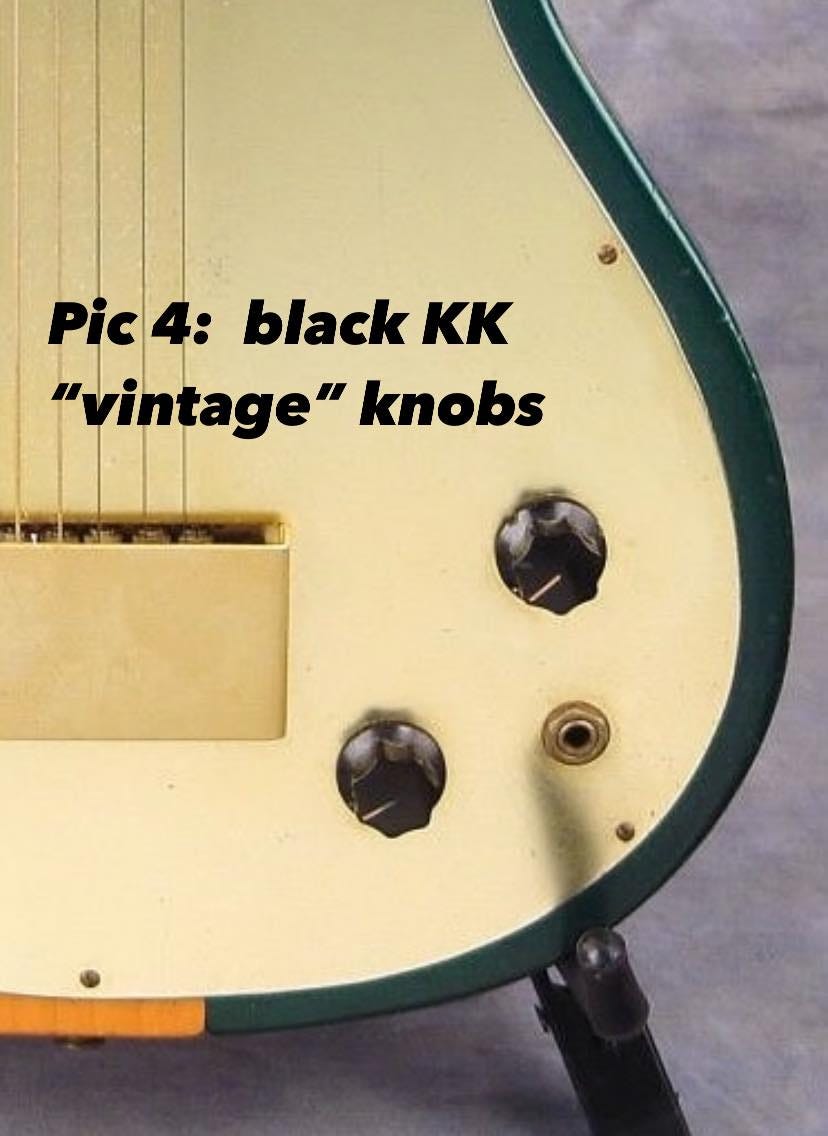 Seen on at least one (and maybe two, hard to say) guitars in period materials are the clear knobs in Pic #2.