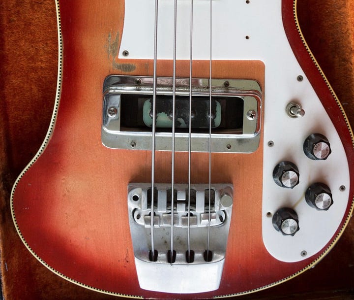 Now, you might think being rare and all they’d be worth more than a “regular” 20 fret example. And you’d be wrong. Now it is true that any pre-transitional 4001 is pretty rare in and of itself. But, given that no player of note is deeply associated with the 21 fretters—yes, Maurice Gibb owned one, but you didn’t know that before you read this, did you?—most true collectors want an archetypical example of one of these rare birds…which only has 20 frets.