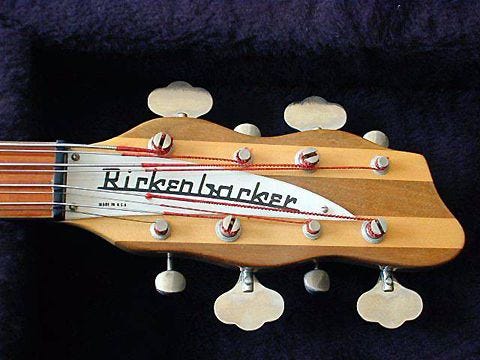 Unlike most of the 8-strings that had come before, the 4008 was strung “traditionally” with the octave strings first—although by using bass tuners for all strings, the nut could be replaced to allow stringing in “Rickenbacker reverse” style—a common occurrence.