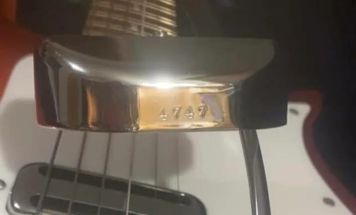 And for the two months of 1966, this remained the case. But Rickenbacker soon realized that once the fourth production digit was added, the serial number would no longer fit between the jack plate screws. So in early March they split it up.