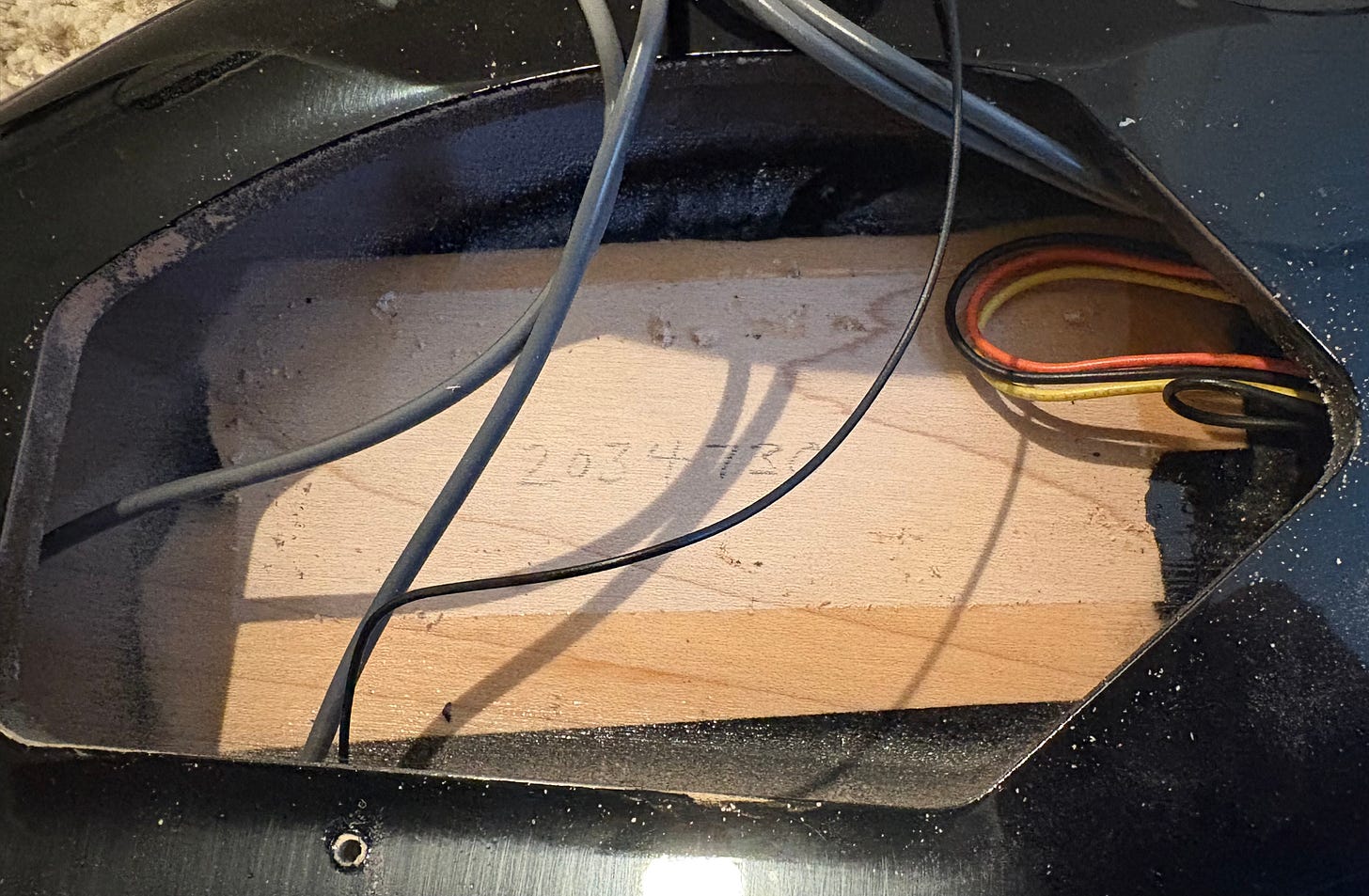 You’ll also occasionally find serial numbers pencilled inside guitars. Unfortunately, in this example, this is a couple digits off from the serial number stamped on this 2020 360’s jack plate.