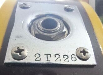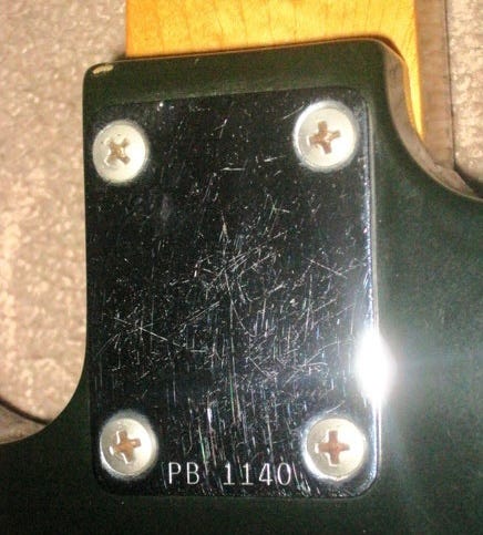 Here’s the thing: the “production” guitars used the output jack plate. Even though it was in a somewhat unusual spot on these early guitars—at the very butt of the guitar, sharing the plate with the strap pin—that’s where the serial number got stamped.