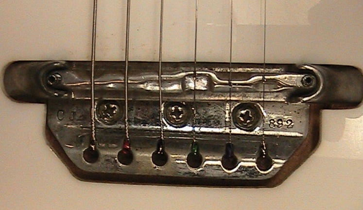 So where did the serial number go? I apologize for the quality of the photo, but you’ll get the idea. It was stamped directly onto the bridgeplate.