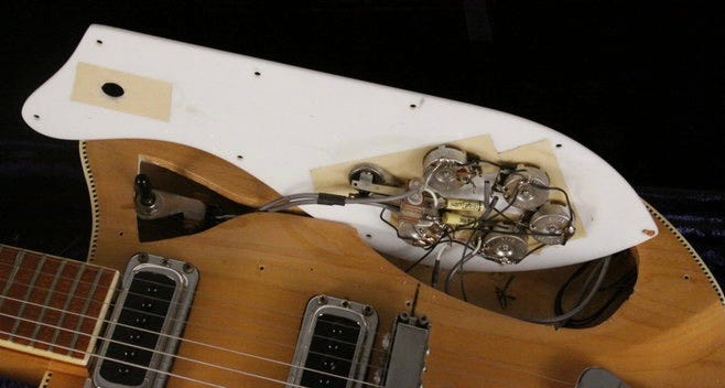 Pretty much everything else on the guitar—including the 360 and 360/12 necks—was straight out of the standard parts bin. Well, apart from the single-level pickguard which covered most of the lower side and contained an extra toggle switch on the upper horn.