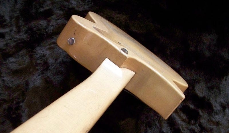 The neck attachment was a strange amalgam of techniques. It was both glued in place—like a Gibson—and bolted on with a single large lag bolt, more akin to Fender’s approach. It proved to be a design dead-end, as no subsequent Rickenbacker models would use this hybrid construction.