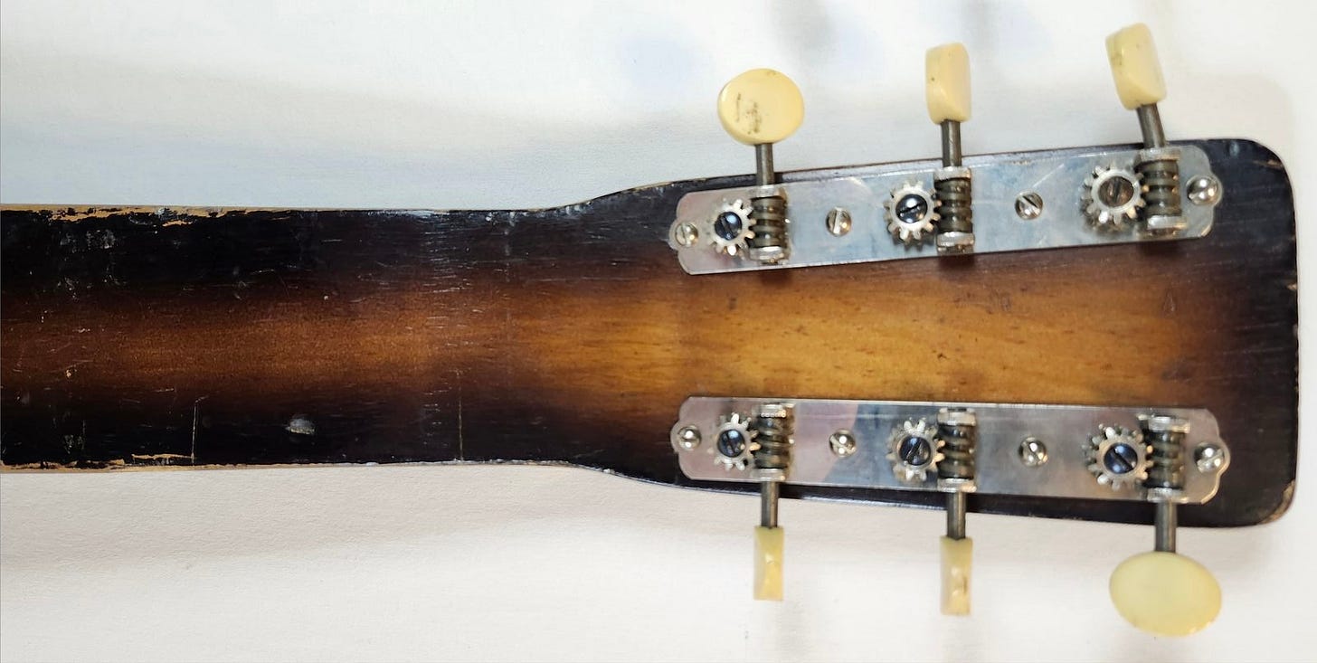 Third—and this is the kicker to me at least—they all have factory decals on the headstock. In this day and age we’re used to counterfeits—we expect them. But who was counterfeiting an entry level guitar in the 1930s?