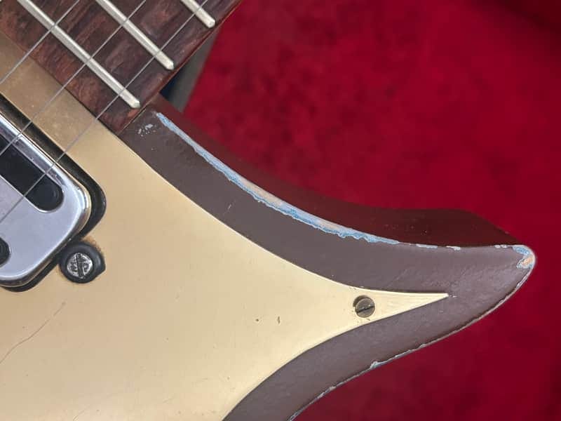 One other interesting thing about the half-tulip Combo 450s is that they challenge a commonly held belief that is often stated as a fact. That “fact” is that Fireglow (and yes, it had a -w until 1967) debuted in 1959. So what color would you call that guitar above? It certainly looks like Fireglow.