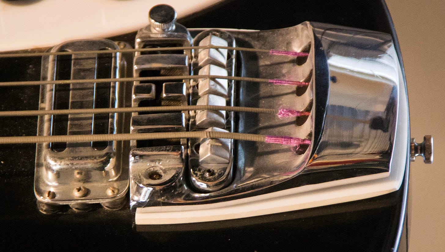 Now you should absolutely click the link above to learn all about deck height, but here’s the important bits you need to know. What we mean by deck height is how far from the top of the guitar the strings are. On many solidbody Rickenbacker guitars—the 4001 being a prime example—that height is about 3/8” (about 9.5mm to those of you who don’t use freedom units). On most semihollow guitars—like the 4005—the height is about 3/4” (about 19mm). Got it?