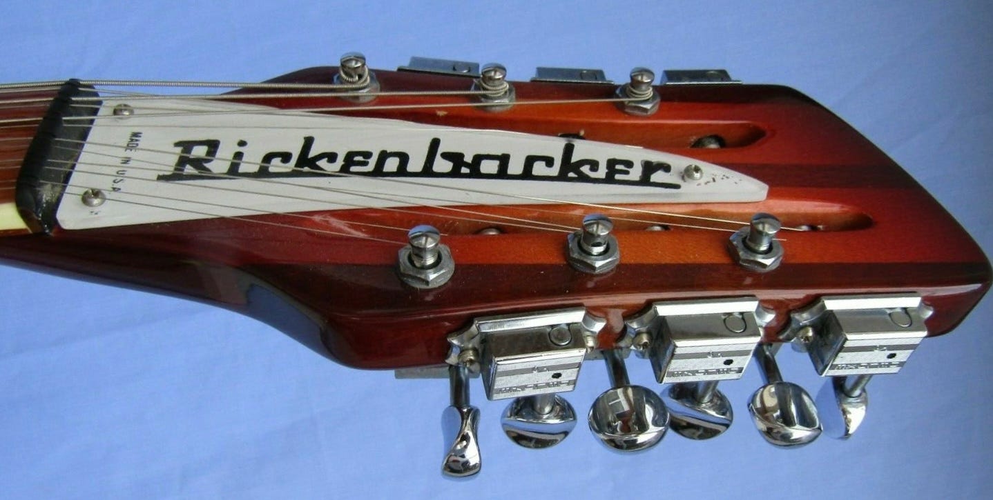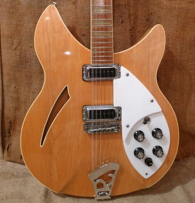 We have here the perfect mix of stock production and prototype features. Stock Higains, “R” tailpiece, silver top knobs, and inset triangle inlays, but on a 21-fret neck guitar with unbound soundhole. Not quite a 360/12V64, but not merely a 360/12WB.