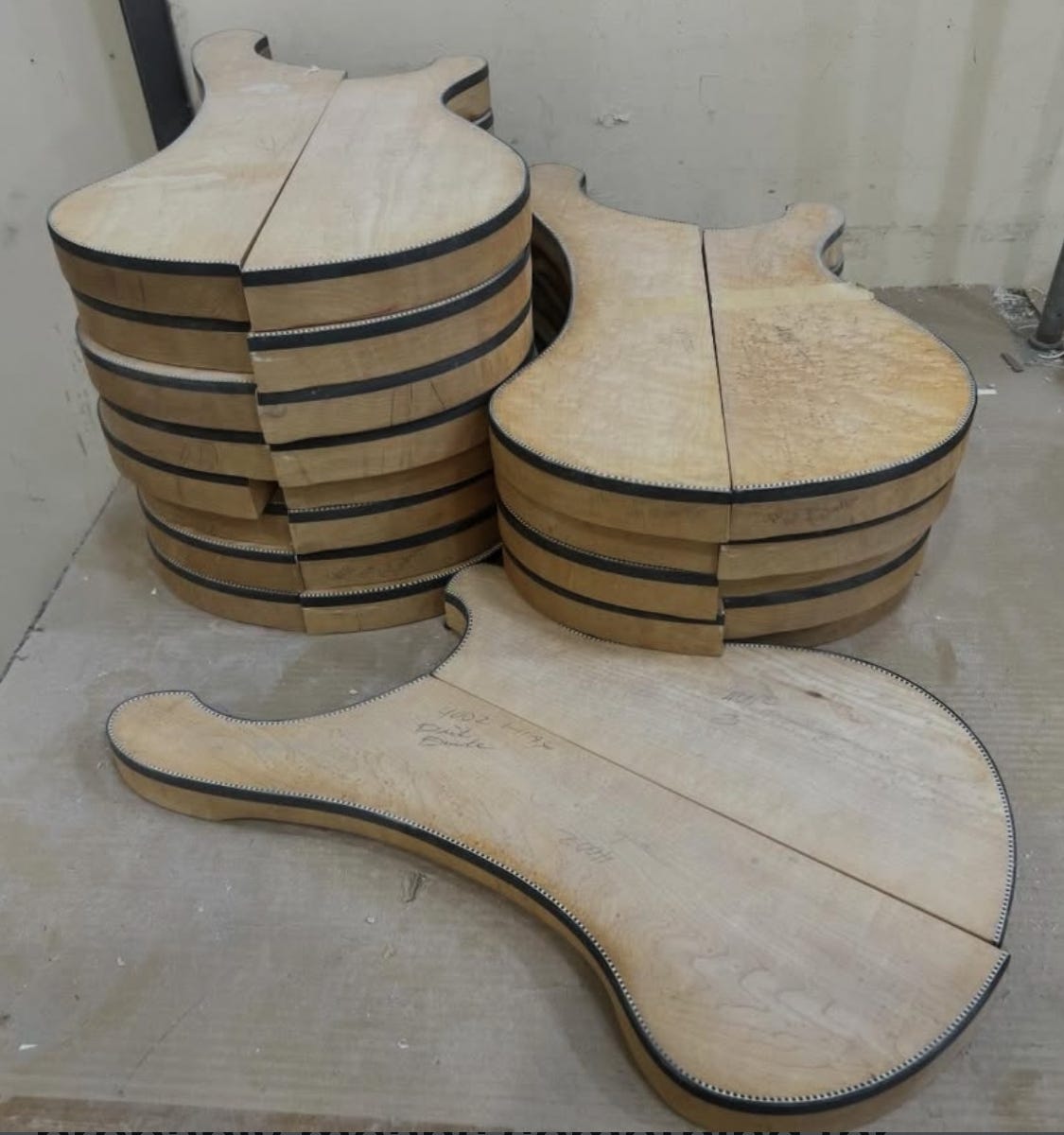 This is, of course, the famous “pallet of 4002 wings” that has been gathering dust in the back of the Rickenbacker warehouse since John Hall discontinued the 4002 (click to learn more) when he purchased the company from his father in 1984.