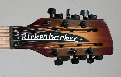 There are a couple of interesting “firsts” with this guitar. It’s the first through-neck (click to learn more) “4000-series body” Rickenbacker guitar—all previous 4000-style body guitars had featured bolt-on necks. It’s also the first—and, to date, only—480-series “stand-alone” 12-string, although the 4080 doubleneck guitar had featured a 12-string option.