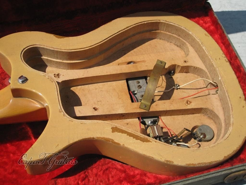 There is no serial number on the jackplate but, per John Hall, factory records indicate it was built about a month before Capri production began. Making this guitar the missing link between the 850 and the short-scale Capri.