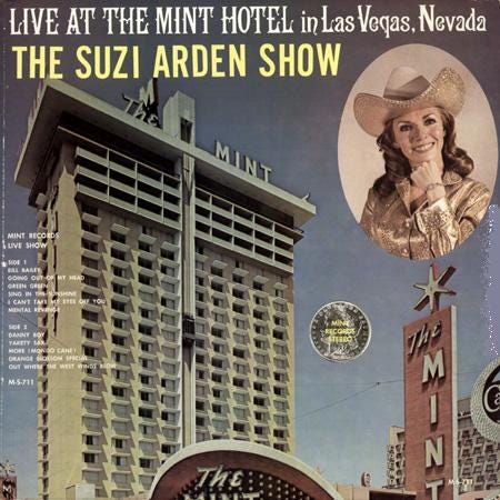 Through the 1950s, under the stage name Suzi Arden, she performed with both a number of “country and western” groups and as a solo artist, including numerous national radio and television shows. By the early 1960’s she made her way to Las Vegas where she began a long residency at the Mint Hotel and Casino as the leader of “The Suzi Arden Show”.