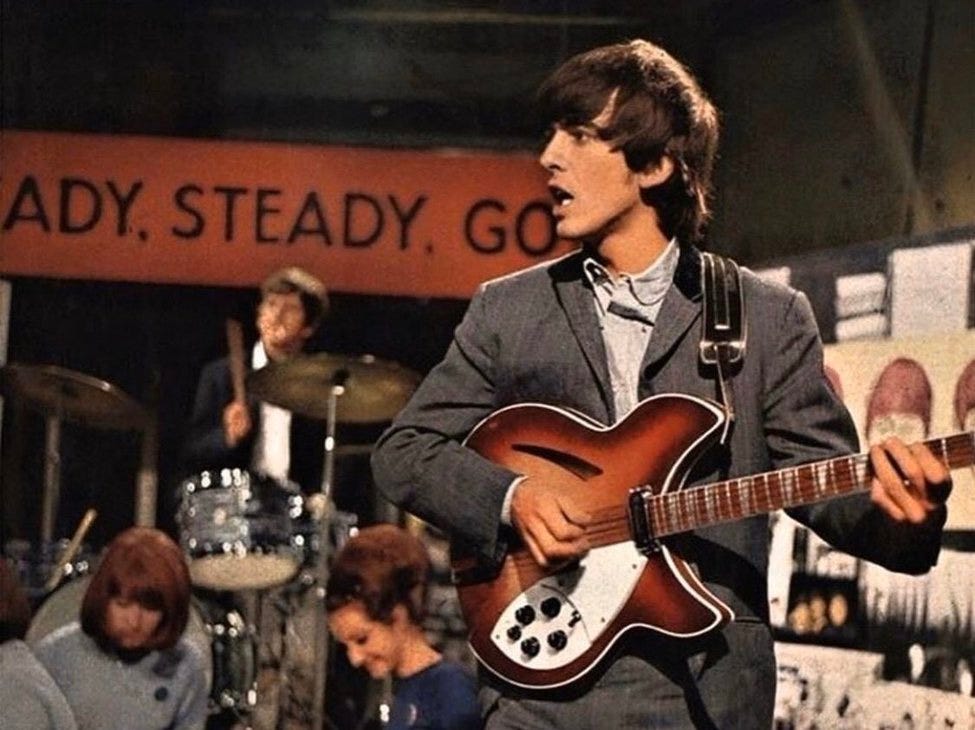 Consider this: which Beatle’s Rickenbacker was immediately visible— right from that very first Ed Sullivan appearance—and featured three pickups and a vibrato? It wasn’t George’s.
