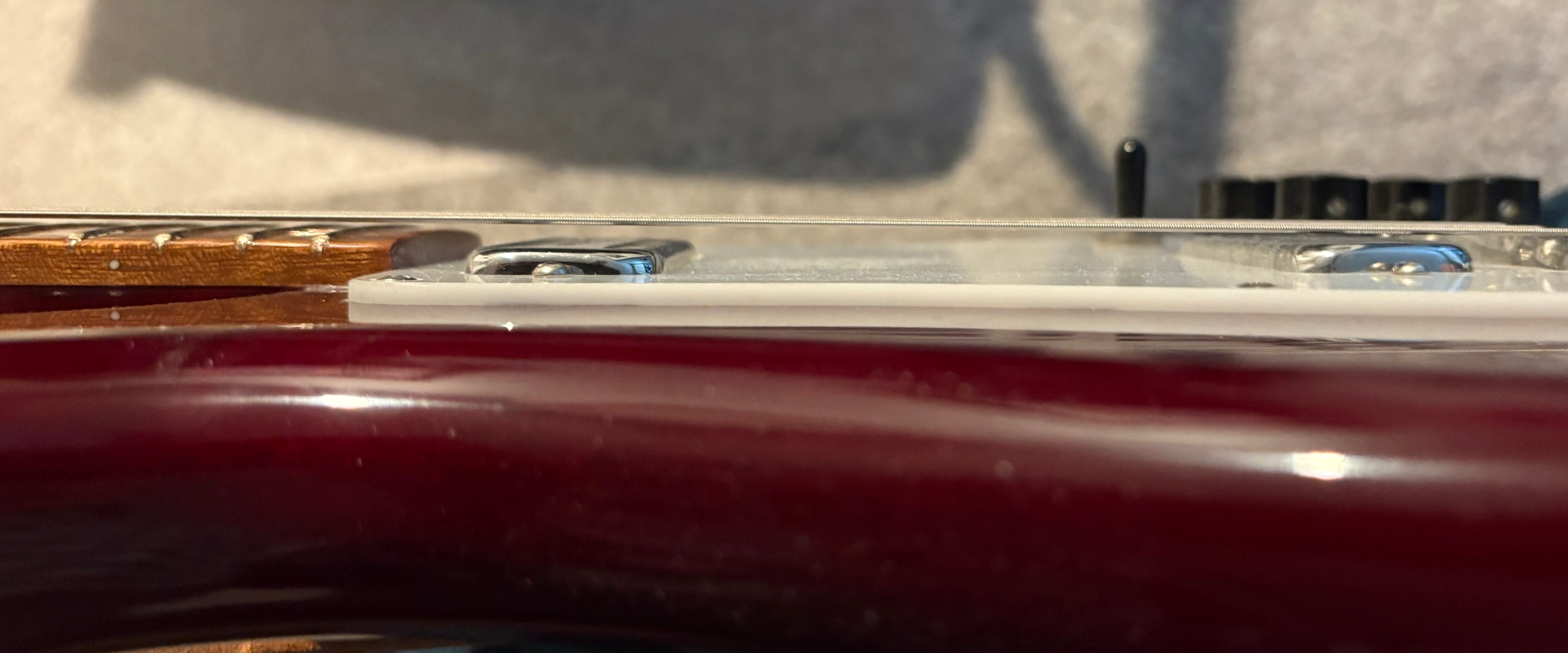Now you should absolutely click the link above to learn all about deck height, but here’s the important bits you need to know. What we mean by deck height is how far from the top of the guitar the strings are. On many solidbody Rickenbacker guitars—the 4001 being a prime example—that height is about 3/8” (about 9.5mm to those of you who don’t use freedom units). On most semihollow guitars—like the 4005—the height is about 3/4” (about 19mm). Got it?