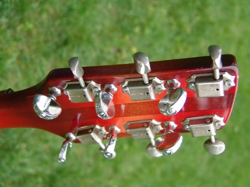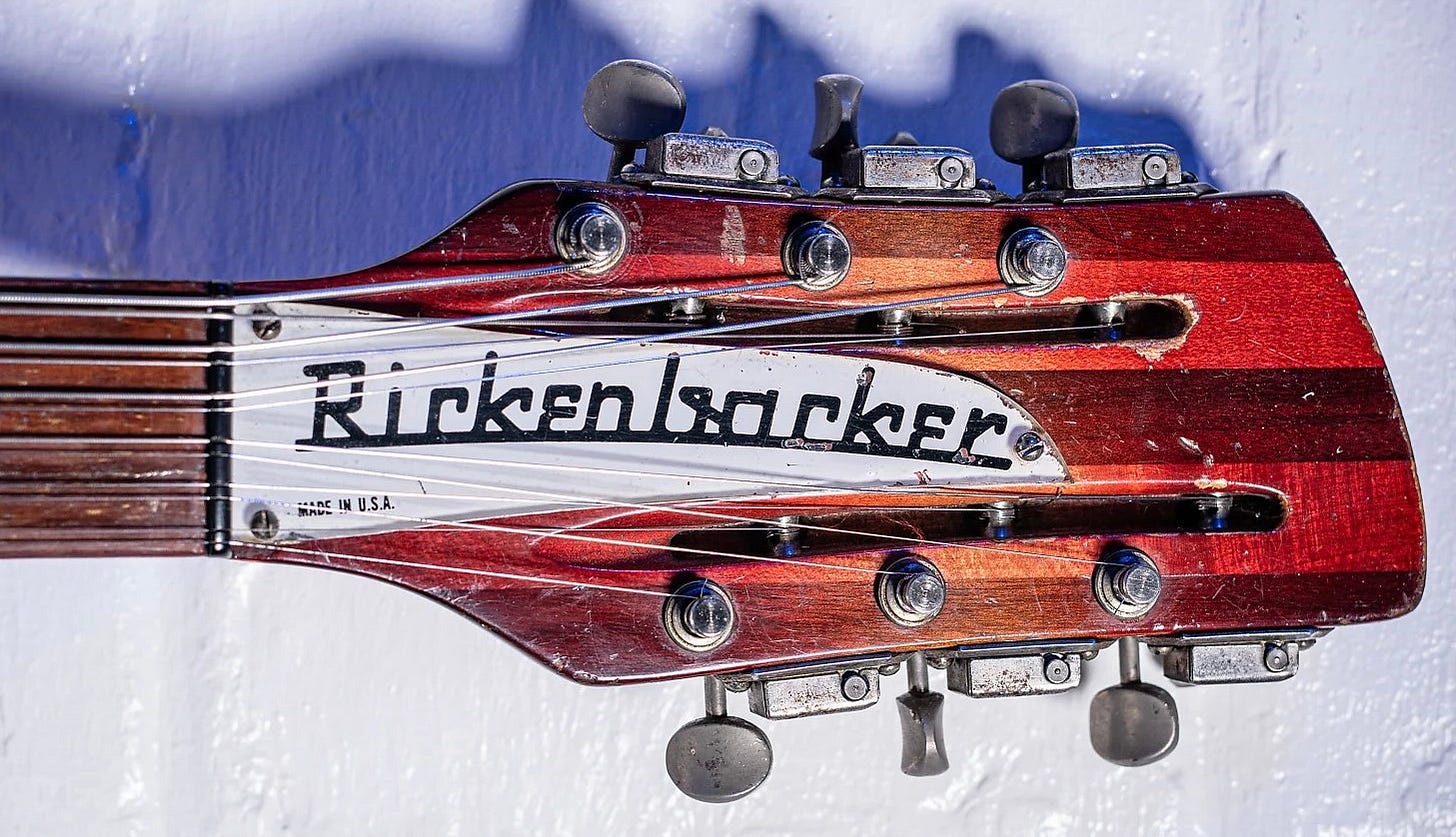 The “sideways” tuners are gone—replaced by banjo tuners—and they’ve all been shifted downward to make them fit. And here’s the part that really messes with your expectations: the headstock itself isn’t any longer. Believe it or not, it’s the same length as a “normal” slotted Rickenbacker twelve-string headstock.