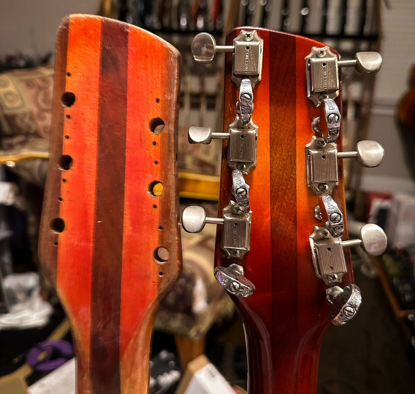 So what’s the fix? Well, this guitar represents one potential solution. Did it solve the problem? Sure. Did it respect F.C. Hall’s original brief for a short headstock? Also yes. Did it look a little goofy in the process? Absolutely.
