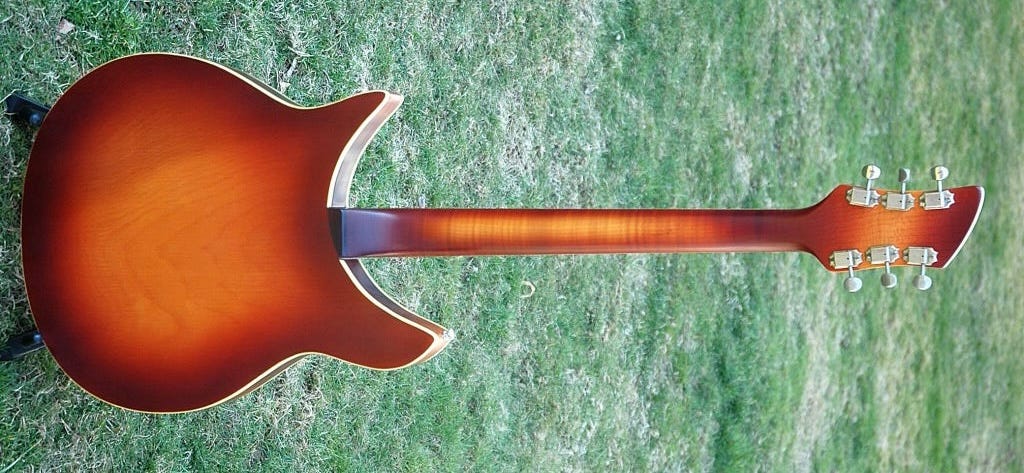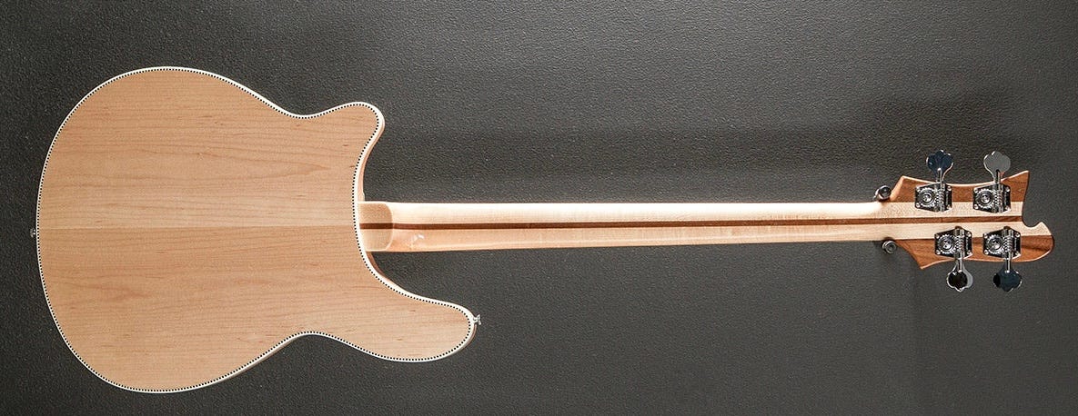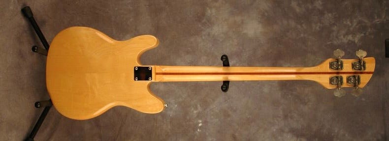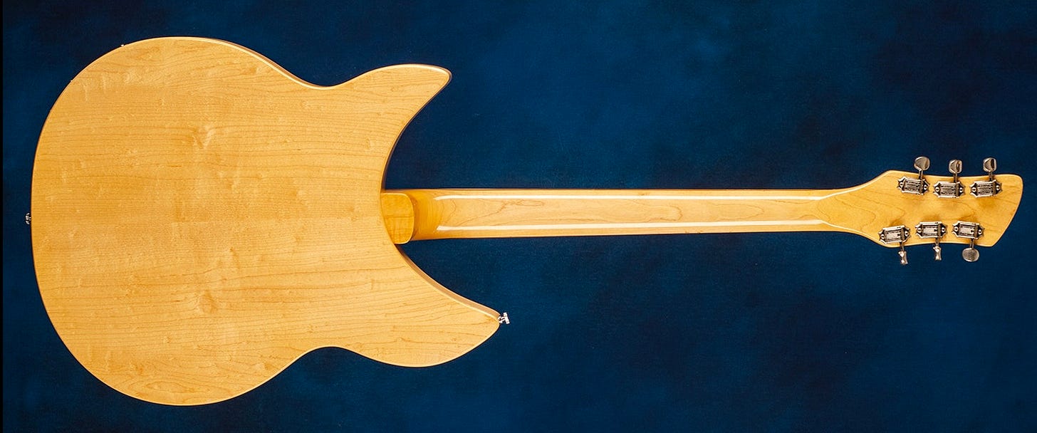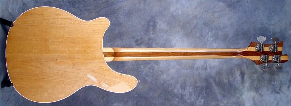 And that brings us to the 4005. “When introduced in 1965, the semi-hollowbody 4005 used a three piece maple/walnut/maple with walnut headstock wings set neck similar to semi-hollowbodied guitars of the era.”