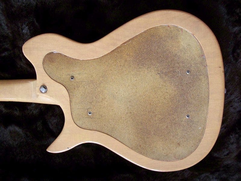 Well, from 1958-1961 most solidbodies had one piece necks—with a couple exceptions we’ll talk about below—but with walnut wings rather than maple.