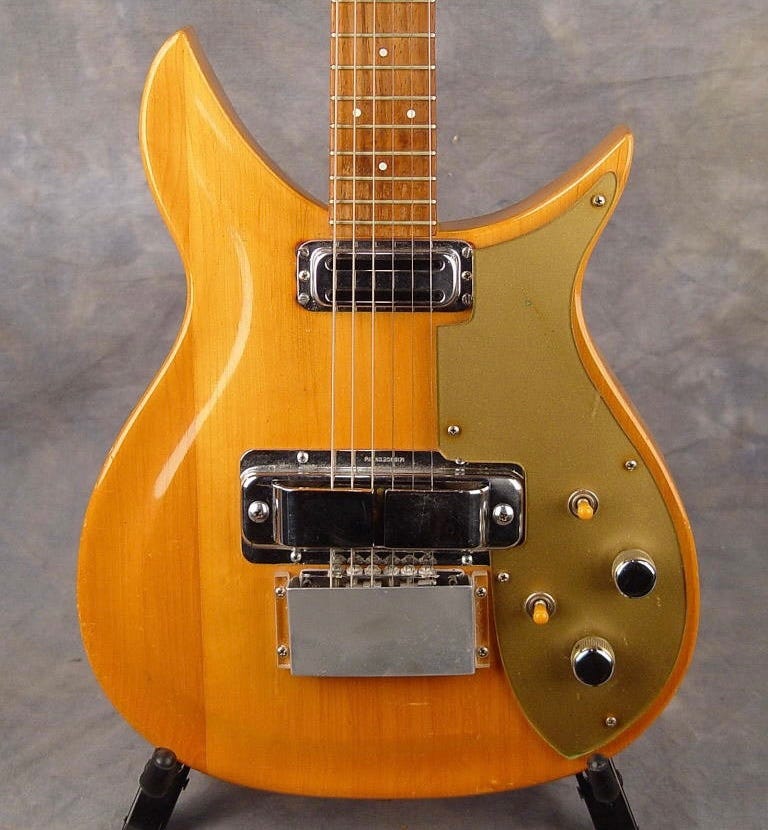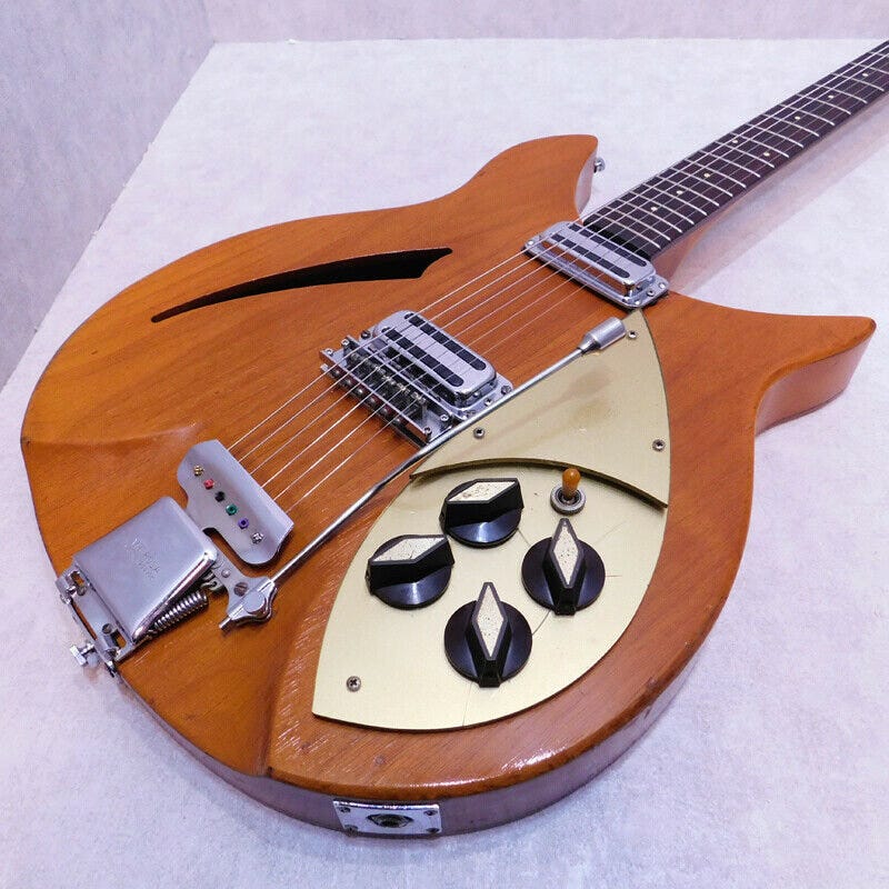 In fact—and this is where it gets interesting—the “plastics” were gold before they were plastic. The very first modern Rickenbacker electric guitars—1954’s Combo 600 and 800 (click to learn more)—had gold “plastics” that were actually gold anodized aluminum.