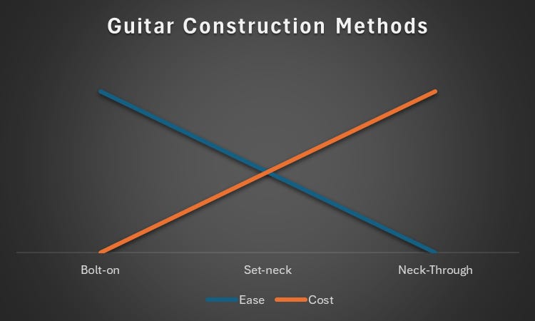 So quickly, set-neck is the “classic” method. It’s how stringed instrument necks have been attached to their bodies for centuries. Almost all acoustic guitars still use this method, and many electric guitar makers—including Rickenbacker—still use this method today. Think 360, think Les Paul.