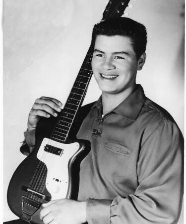 I’m much more certain, however, that the first “production” neck-through electric guitar was the Harmony H44 Stratotone, produced between 1952 and 1957 and made famous by Ritchie Valens.
