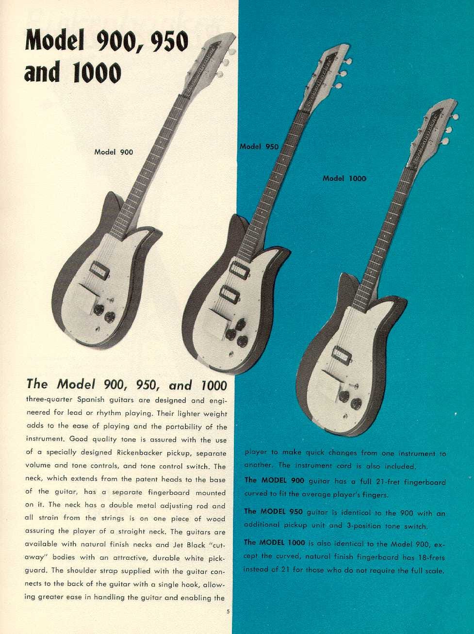 From the Combo 400 on, neck-through construction would be the norm for Rickenbacker solid-bodied guitars—starting with the FIVE new neck-through models that would appear in the 1957 catalog: the Combo 450, the short-scale 900, 950, and 1000, and the 4000 bass.