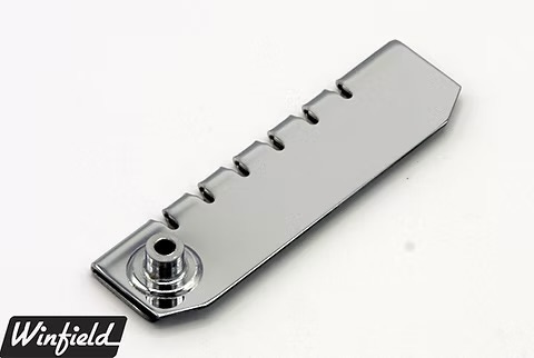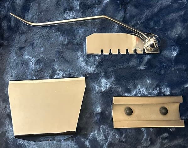 There are even aftermarket versions on the market today, most notably Winfield Vintage’s. You wanna know if the Accent on your guitar is factory or aftermarket? Look at the side view of the “string engaging saddle”. Here’s the Winfield piece: