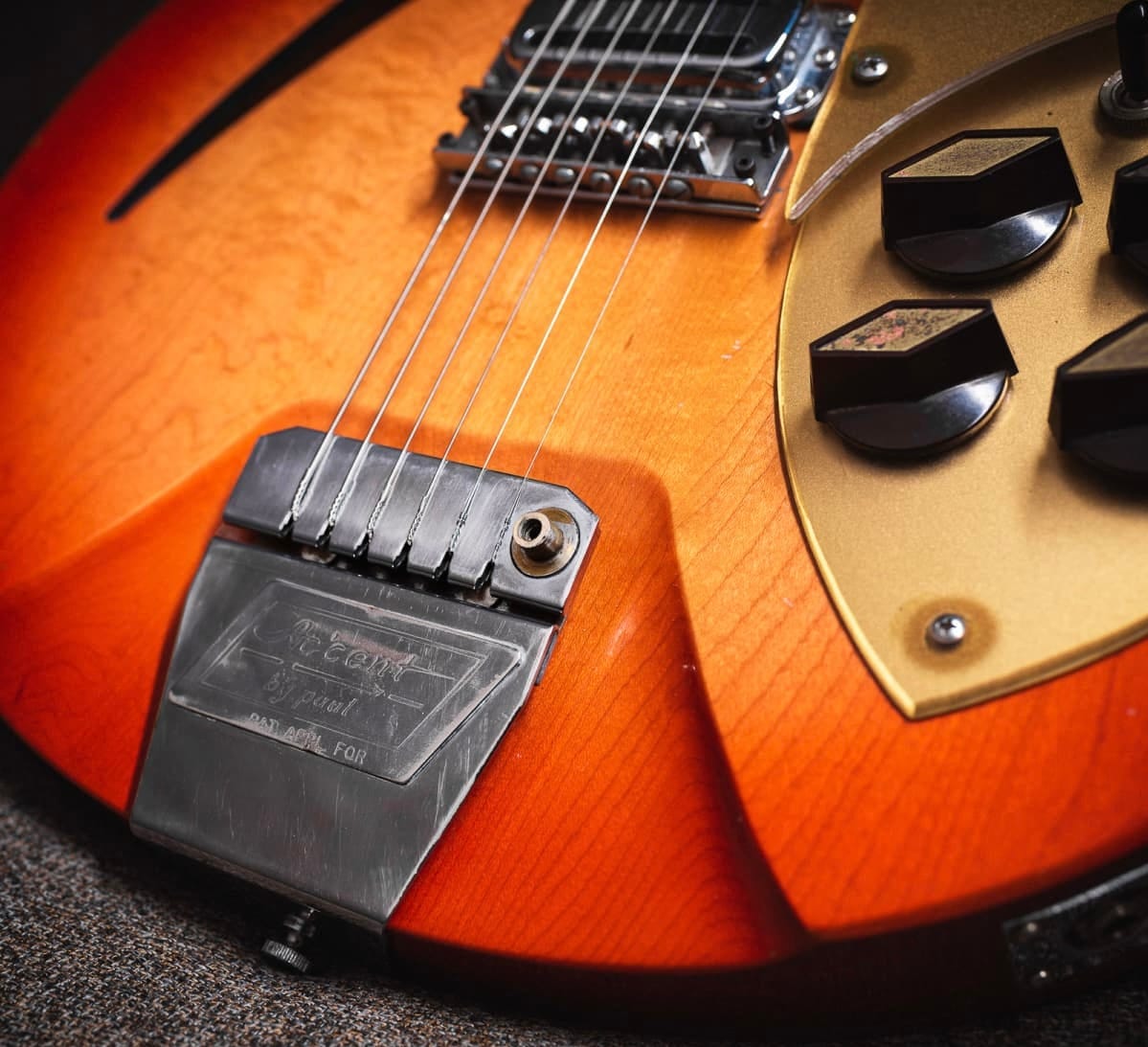 In order to improve tuning stability, Accent equipped guitars were equipped with roller bridges to remove friction points, just as Kauffman equipped guitars had been.