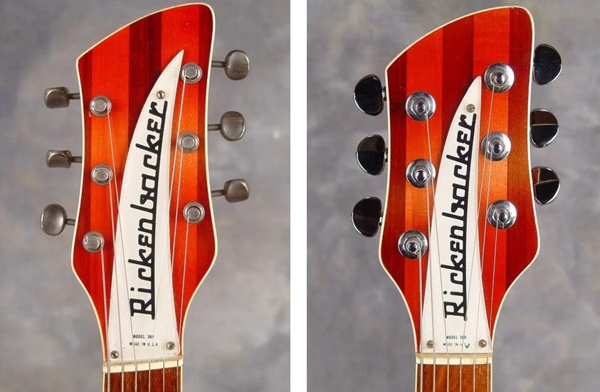So in their quest for relevance, in addition to the aforementioned 24 frets and Higain pickups Rickenbacker decided to further update their flagship guitar—the 360–with the “best” tuners currently on the market: Grover Rotomatics.