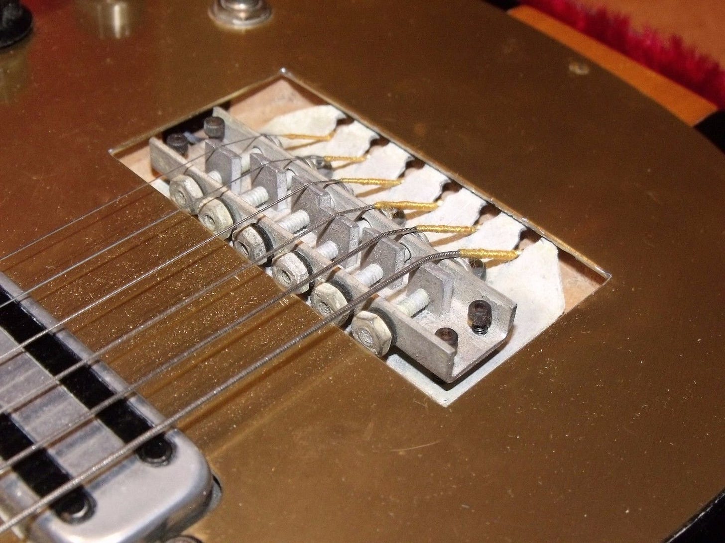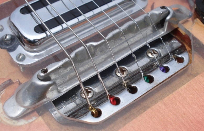 The final “significant” change to the 450’s design would occur in 1963. The Rickenbacker standard 6-saddle adjustable bridge was replaced with a floating, compensated unit on a shorter bridgeplate.
